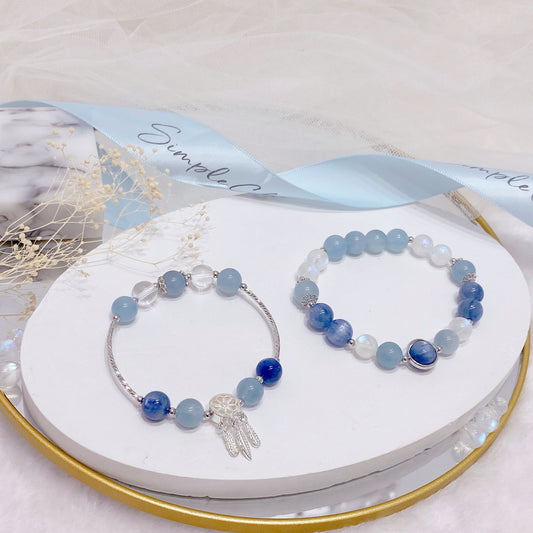 【舒解憂慮】藍晶 海藍寶 月光石 水晶手鏈