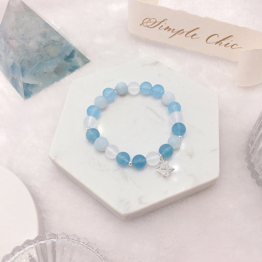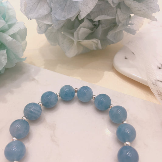【舒解憂慮】藍晶 海藍寶 白水晶 水晶手鏈
