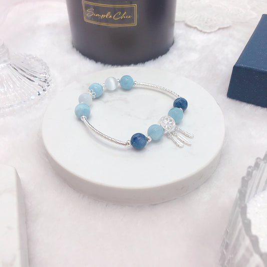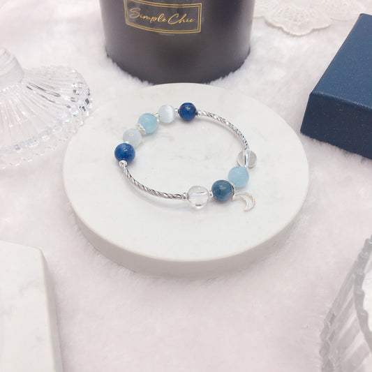 【舒解憂慮】藍晶 海藍寶 白水晶 貓眼石 水晶手鏈