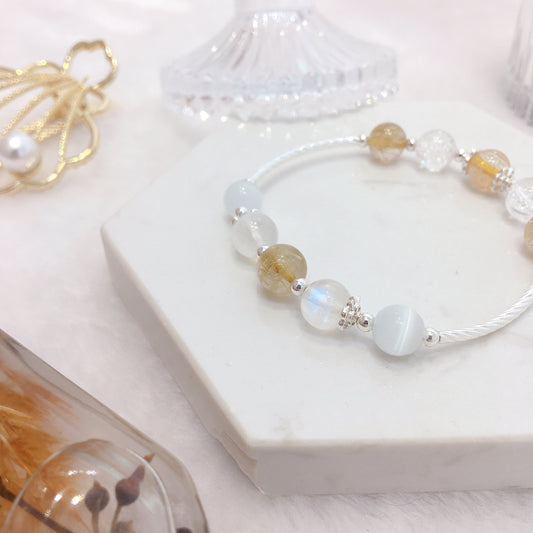 【財運健康】金髮晶 白水晶 高質月光石 貓眼石 天然水晶手鏈
